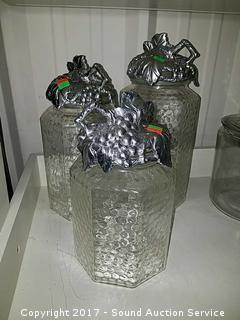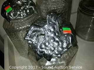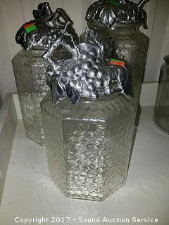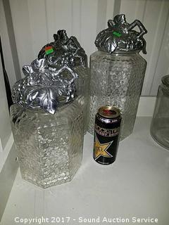 Lot #0037: 3 Clear Glass & Pewter Canisters