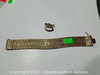 Earrings are pierced ear, one is missing the post. Bracelet is approx. 1" thick, 7-3/8" long, quite heavy.