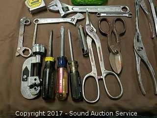 Includes: Screwdrivers, metal shears, crescent wrenches, pipe cutter, files and more.