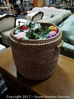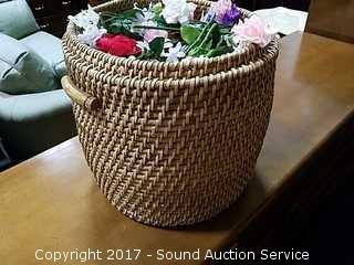 Lot #0148: Nice Woven Basket Loaded w/Silk Flowers