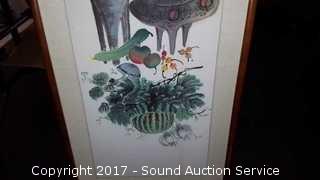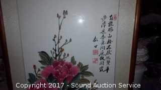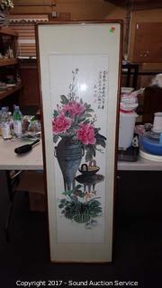 Wooden frame and silk matting. Has glass cover. Approx. 60" tall, 18-1/4" wide. ATTN: We are not art experts or appraisers, please use your own judgement when bidding!