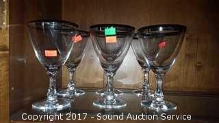 Lot #0067: Set of 6 Silver Rimmed Wine Glasses
