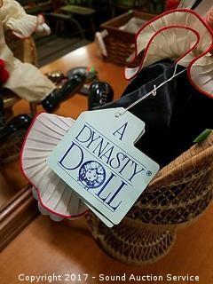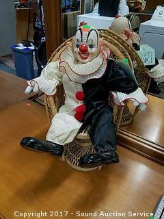 Clown is by Dynasty Dolls, has original tag. Chair is 126" tall, doll is 14" tall.