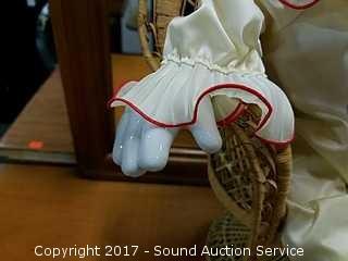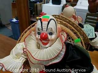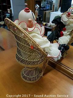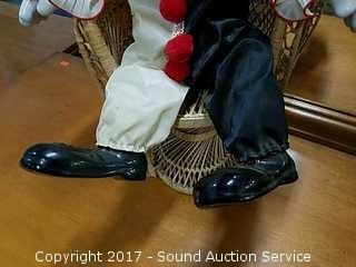 Lot #0035: Vtg. Porcelain Clown Doll w/Wicker Chair