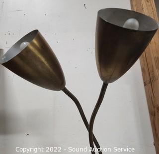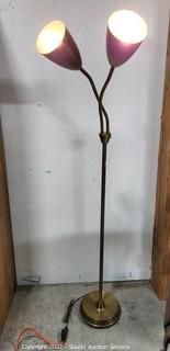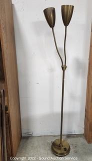 Lot #0091: 2-Light Adjustable Brass Finish Floor Lamp