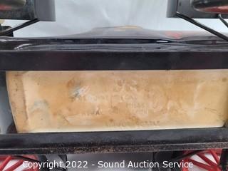 409 Lots including; Bassett Beige Sectional Sofa w/Ottoman, Troy-Bilt 20" Gas Roto-Tiller, Sugar Hill Furn. Pine Bar, Kenline Inc. MCM Art Deco Brown Leather Loveseat, Antique 19th Century Cabinet, MCM Black & Chrome Finish Lounger, Vintage Oak Curio Cabinet, Vtg. Mahogany 5-Drawer Makeup Vanity, Retro Lamps & Furniture, Collectible Coins, Antique Berkey & Gay Mahogany Raised Curio Cabinet, Various Art Glass Decor, Vintage Uranium & Other Glassware, Pottery, Commodore 64 Personal Computer w/Accessories, Antique Child's Singer Hand Crank Sewing Machine, Smelting Ladle, Glass Fishing Float, Vintage Northern Electric Rotary Dial Pay Phone, Assorted Breyer Plastic Model Horses, Collectors Plates, Swag Lamps, Vtg. Records, Large Collection of Vtg. Empty Beer Cans & So Much More!!!