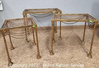Lot #0354: 3 Vtg. Gold Finish Iron Nesting Tables