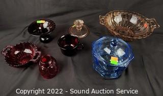 Lot #0158: 7pc Vtg. Colorful Depression Glassware
