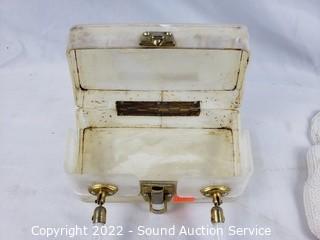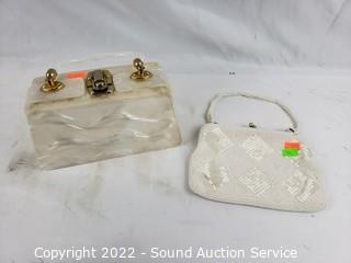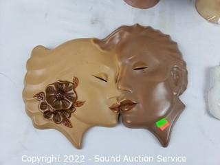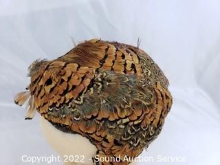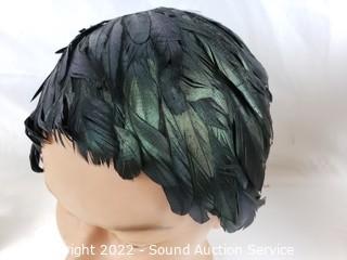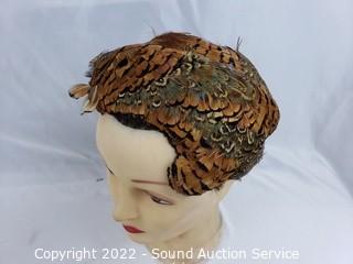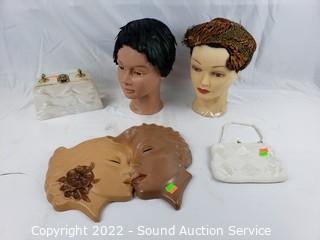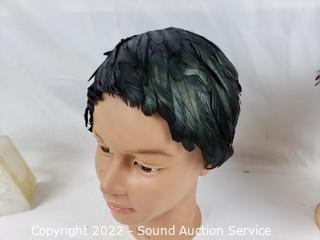 Lot #0148: Feather Hats, Clutches, Ceramic Face Sculpture
