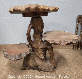 Lot #0370: Natural Finish Wood 3-Tier Table