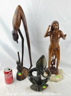 Lot #0284: Unique Carved Wood & Stone Sculptures