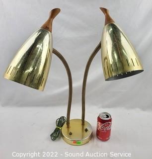 Lot #0079: Vintage 2-Light Adjustable Brass Finish Table Lamp