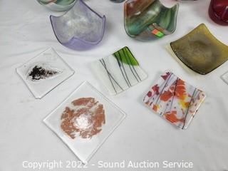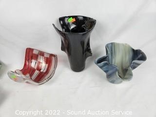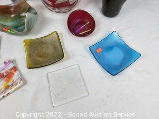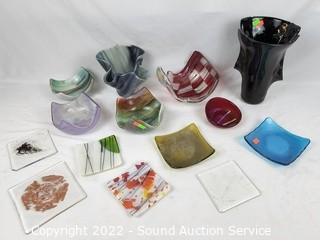 Lot #0195: 14pc Art Glass Vase, Bowls, Dishes