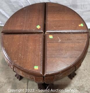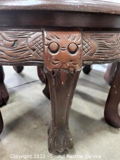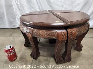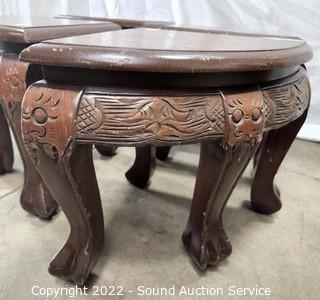 Lot Details: Fit together for storage or to be a larger stool. Overall 12" x 23" diameter. Some wear to the finish.