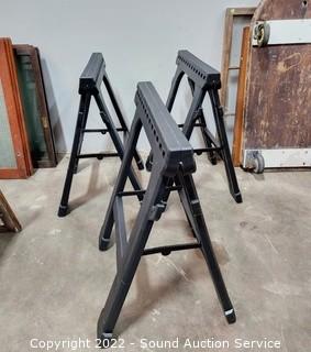 Lot #0336: 3 Vtg. Folding Plastic Saw Horses