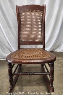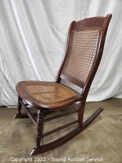 Lot #0041: Antique Cane Back & Seat Rocking Chair