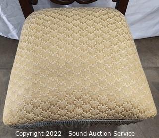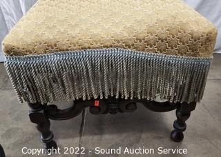 Lot Details: Fabric upholstered padded seat with fringe edging. In great condition. 47" x 19.5", 18" to seat.
