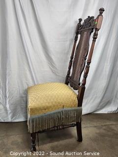 Lot #0055: Antique Carved Wood Cane Back Chair