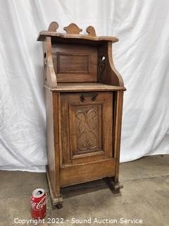 Lot Details: With wastebasket drawer. Some wear to the finish, solid wood construction. 36" x 14.5" x 12".