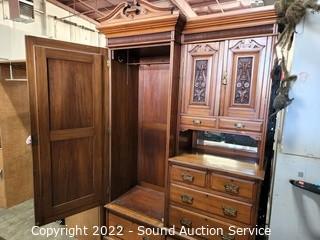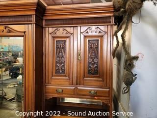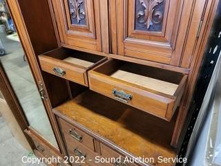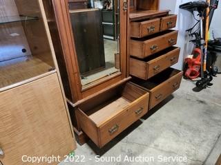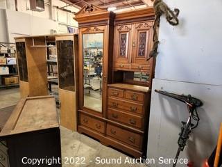 Lot #0245: Antique Wardrobe Cabinet Dresser w/Mirror