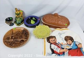 Lot #0394: Duck Roaster, Lunch Plates, Figure, & More