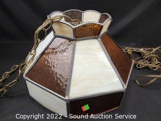 Lot #0329: Leaded Slag Glass Hanging Lamp