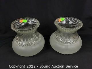 Lot Details: Shades are from Morck Hotel Aberdeen 1924. 6.5" x 6". 7" x 7" ice bucket, 14" H x 4.5" decanters.