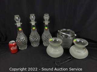 Lot #0405: Vtg. Decanters, Ice Bucket & 2 Antique Lamp Shades