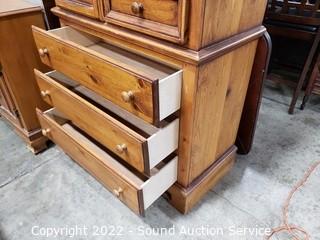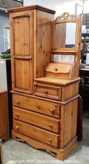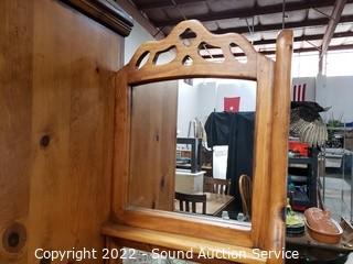 Lot #0399: Vtg. Pine Mirrored 4-Drawer Cabinet