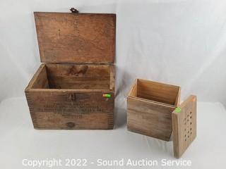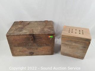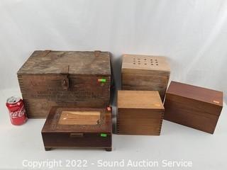 Lot #0356: Vtg. Wood Ammo, Trinket & Recipe Card Boxes