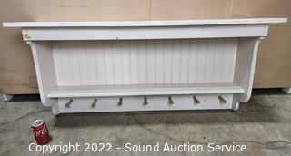 Lot #0054: White Painted Pine Wood Floating Shelf Coat Rack