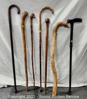 Lot #0067: 7 Wood & Metal Canes