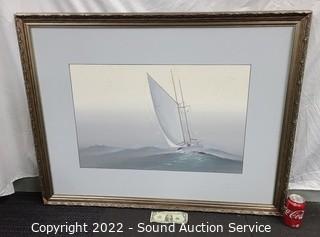 Lot #0063: Original M.Lenoir? Signed Sail Ship Oil Painting
