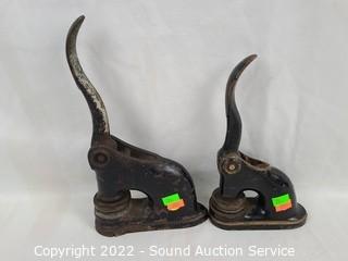 423 Lots including; Antique Ornate Carved Wood Long Ship Sculpture, Vtg./Antique Original & Print Artwork, Red Wing 6-Gallon Crock w/Lid, Nice Pine Dresser, Primitive/Native Carved Masks/Figures, 51pc Towle Sterling "Old Lace" Silverware Set, 4 Vintage Atlas Sound C-120 Tower Speakers, Various Lamps, Asian Inspired Black Lacquer Tiger Scene Table, Unique Popsicle Stick Handcrafted Table Lamp, Equipment Amplifiers, Lg. Amethyst Glass Vase, Danish Mid-Century Modern Stackable Chairs, Schou Andersen Danish Teak MCM Accent Chair, Acoustic Guitars, Vtg. Handcrafted Quilts, Vtg. Record Albums, Smith & Wesson Throwing Knife & Axe Set, Vtg. Sound Equipment, 10k Rose Gold Ring S:5.5, Various Vintage China, Sterling Ornaments, Vtg. Military Ephemera/Collectibles, 18th Century Burl Wood Snuff Box & So Much More!!!