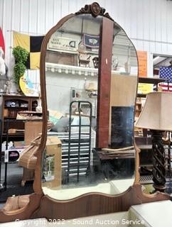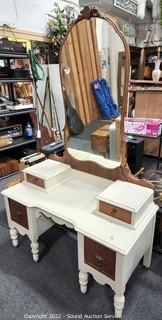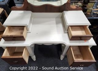 Lot #0045: Vtg. Mahogany Ivory Painted Makeup Vanity