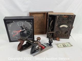 Lot #0148: Vtg. Tube Tester, Planes & Clock/Thermometer