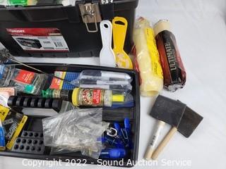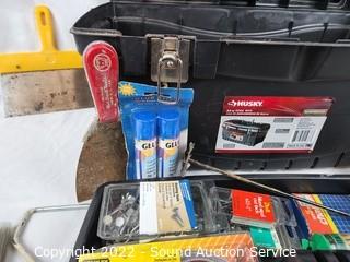 Lot #0218: 22" Husky Toolbox w/Hardware, Painting Supplies