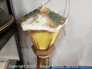 Lot Details: Various ornaments, tins, string lights, various Santa figures, tree skirt & more.