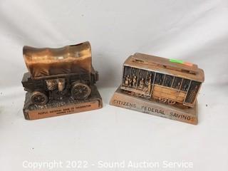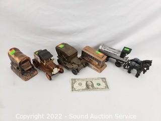 Lot #0182: 5 Vtg. Cast Metal Coin Banks