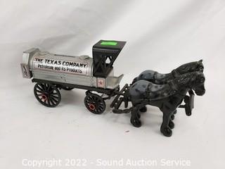 Lot Details: Banthrico Carriage, Texaco 1991 horse drawn carriage tank, Banthrico trolley, Banthrico 1910 vehicle, ERTL 1918 Ford model "T" replica.