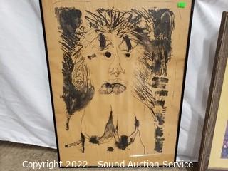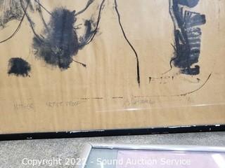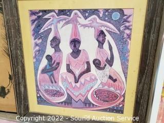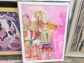 Lot Details: Ltd #14/20 Marilyn Owens signed "The Shower" Litho 11" x 34". Watercolor Violinists, don't see a signature, 17" x 23". Primitive Tribal Print, don't see a signature, unsure if original or print, 21" x 22". & Mother Sketch artist proof 1966 by BJ Hames? 24" x 18" & other.
