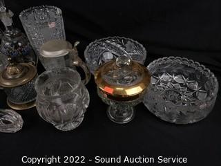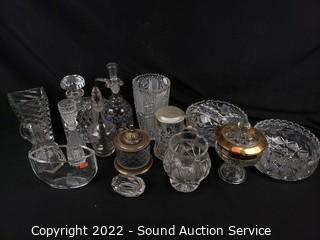 Lot #0166: Assorted Clear Glass & Crystal Table & Serviceware