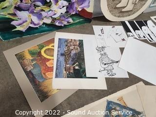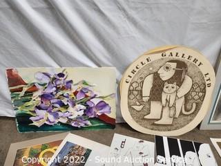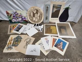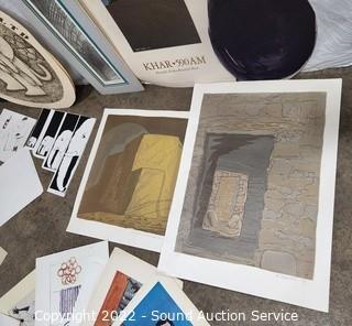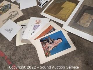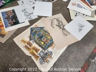 Lot Details: Signed 1974 Circle Gallery, 20" Dia. J.Blossom Artist Proof 7.5" x 23". Susan Kane, Orchid Water Color, 15" x 23". James Tatum "Grandpa's House", 18" x 17.5". Byron Birdsall Poster Litho, 15" x 25". Stabstad Artist Proofs 18" x 24" & other sketches & drawings.