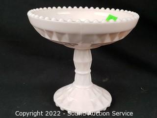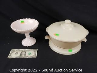Lot #0178: Fire King Opal 3pc Warming Dish & Pink Compote