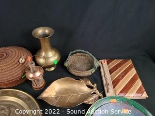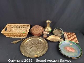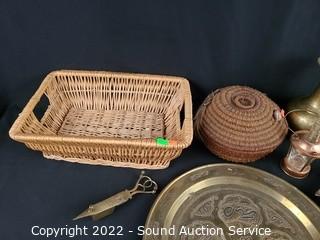 Lot #0125: Handcrafted Woven Baskets, Journal, Brass Decor