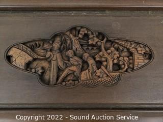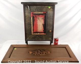 Lot #0158: Hanging Carved Wood Panel & Wall Mount Cabinet