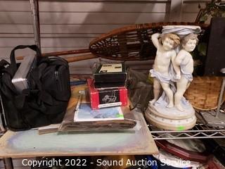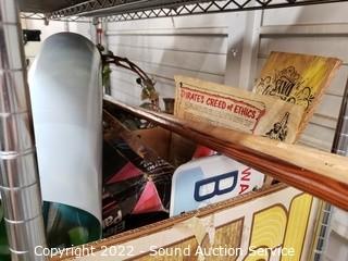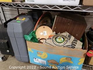 281 Lots including; Husky 2pc Black Steel Locking Tool Chest, West Elm Axel Full Leather Futon, Hisense Household Chest Freezer, Modern Desks, Metal Base Wood Entryway Bench, Entryway Benches, Hand Carved Didgeridoo, Native Copper Jewelry, Vintage Player Piano Rolls, Vtg. Pottery China, Le Creuset & Other cast Iron Enamelware Cookware, Whiskey Crocks, Blue Danube Japan Fine China, Vtg. Records, Asian Collectibles/Decor, Children's Toys, Artwork, Vtg. Glassware, Sports Trading Cards, Air Conditioners, African Juju Hat/Headdress, Various Knick Knacks, Collectibles So Much More!!!