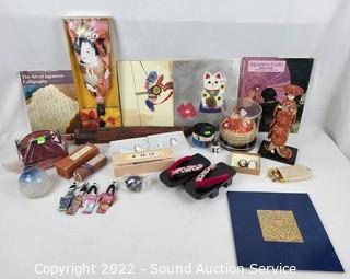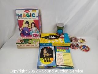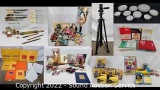 Lot Details: Assorted Board & Table Top Games, Puzzles; Vtg. GE #31 Flash Bulbs & RZ Flood Light Bulbs; Assorted Asian Collectibles, Decor; 12pc Various Cutler; Currier & Ives Warmer & Bottle Cap'n Corker; Vtg. Shotgun Cleaning Rods, Patches & Solvent; David & Sanford Camera Tripod; 7ct Various Automotive Repair Manuals; Assorted 11x14" & 16x20" Photo Paper & Matting; 24pc Coventry Felicia Japan Fine China.