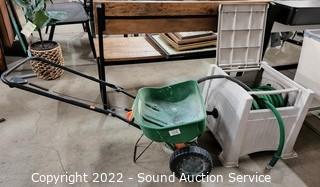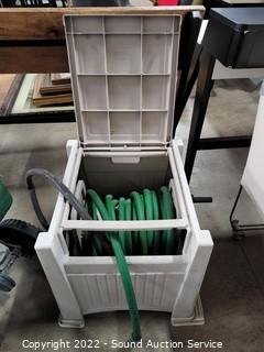 Lot #0032: Suncast Hose Box w/Hose & Scotts Turf Builder