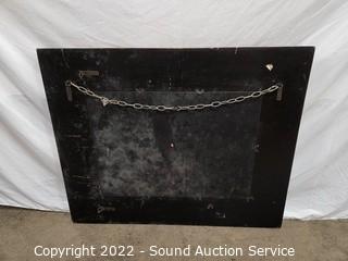 Lot Details: Wood framed with glass panels, one panel is cracked. Various wear to the paint finish. 35" x 43.5".